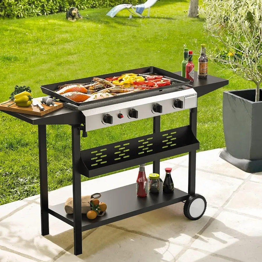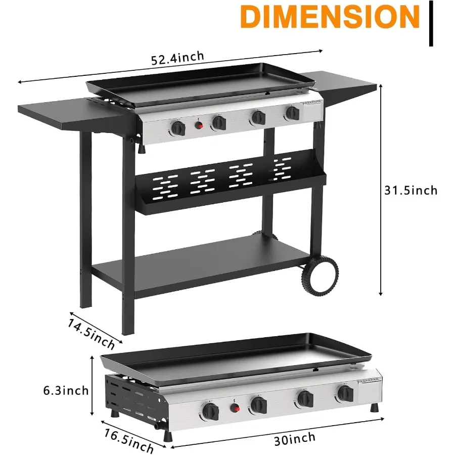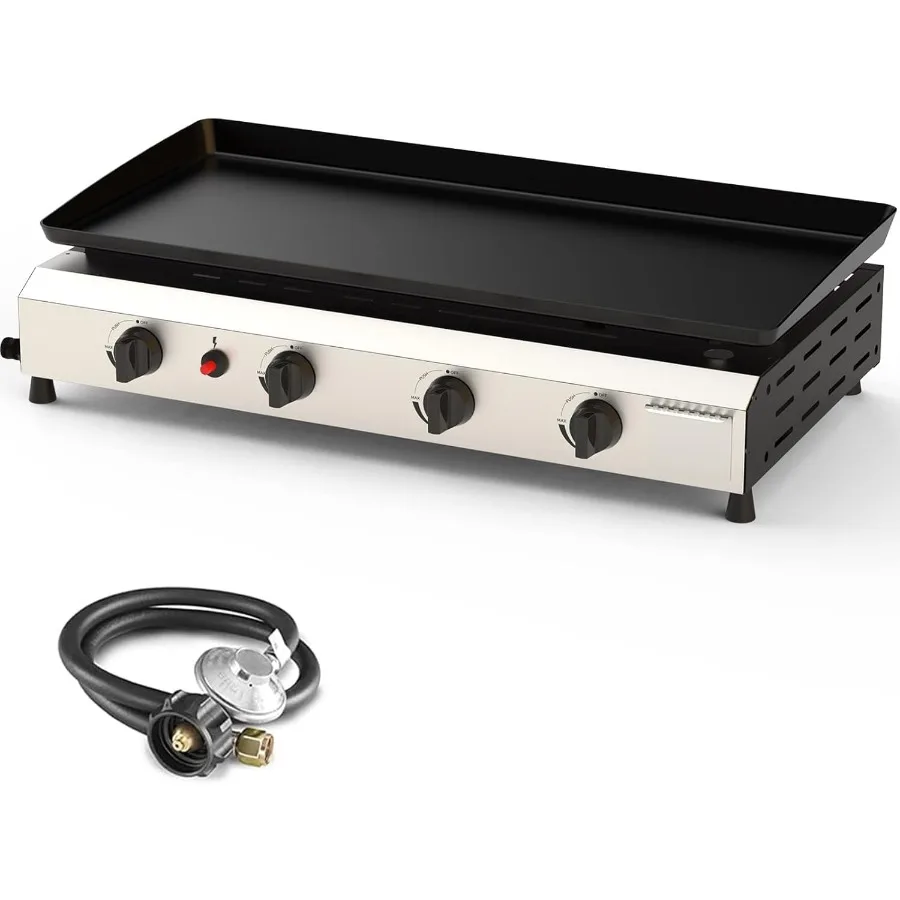 Cook real meals outdoors with the 30-Inch 4 Burner Portable Propane Griddle, a powerful flat-top grill designed for campers, tailgaters, and backyard chefs who want restaurant-style cooking anywhere.
