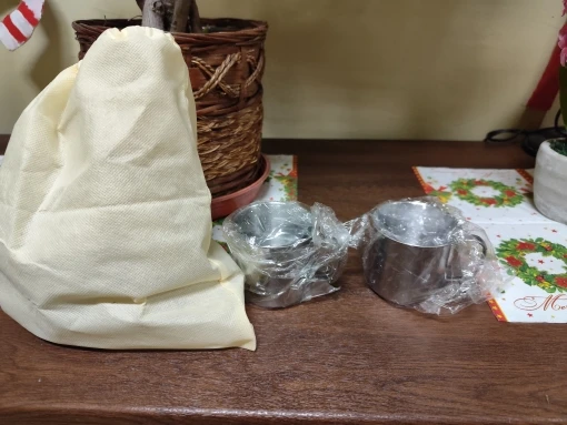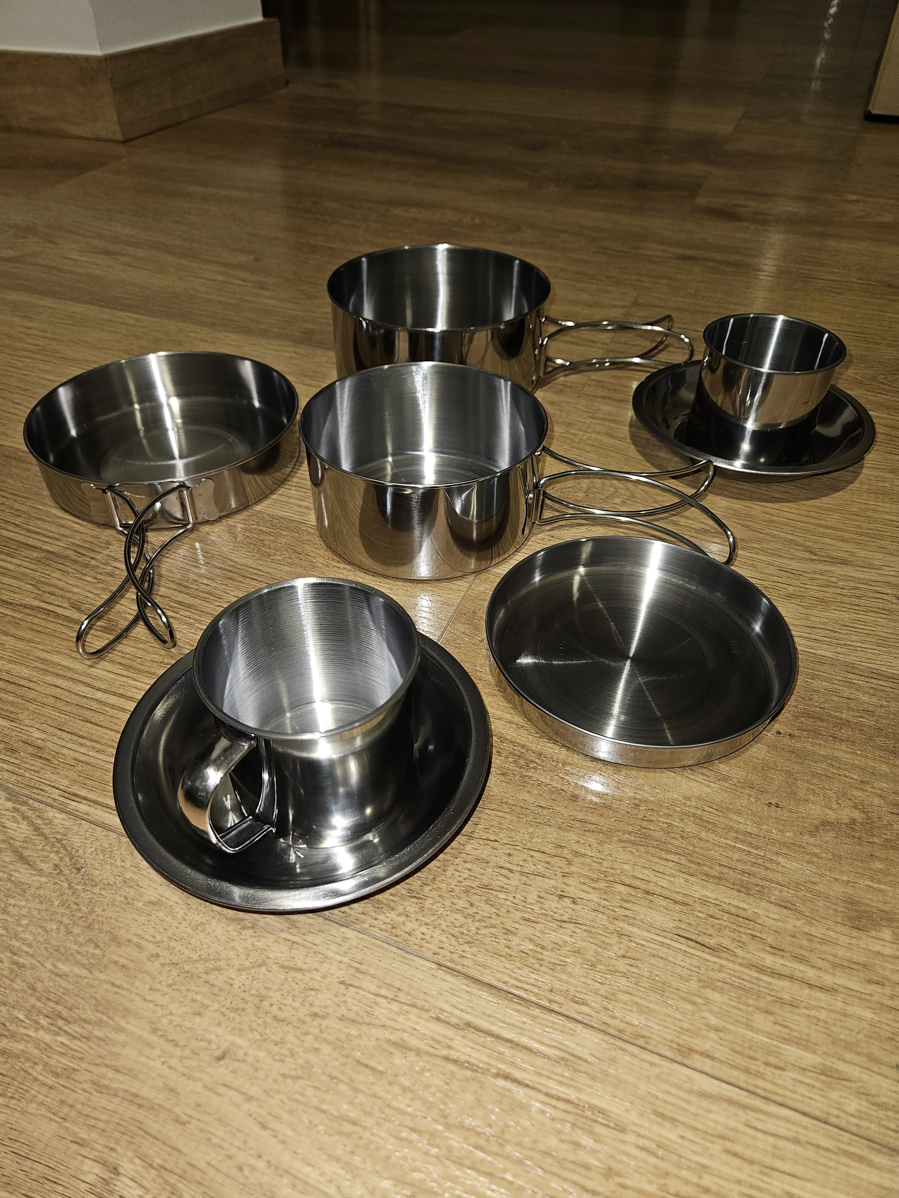 As shown in the images, the cups and plates are a bit small, but the cauldrons are the perfect size for a journey. You can always use the pan with a lid as a plate.
