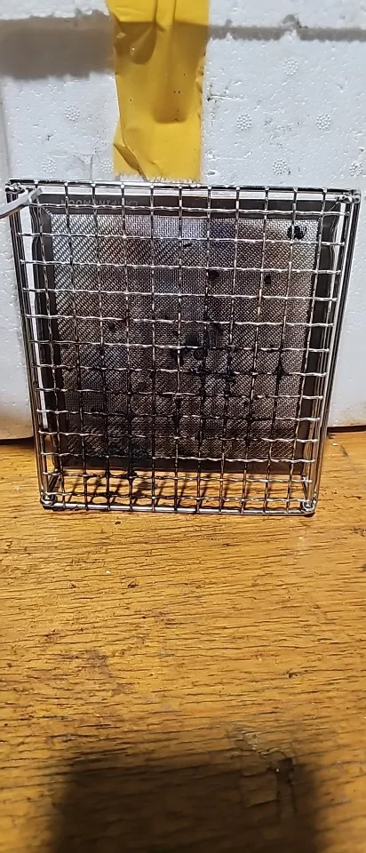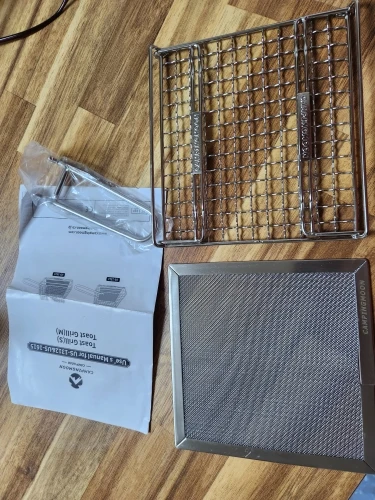 A wonderful minimalist grill. The mesh creates infrared radiation and traps droplets. The heat is enough to get a real roast with toppings and an amazing aroma. Tried it on chicken in peanut sauce and boiled corn. Very satisfied. A great option for a picnic, camping, or at home.