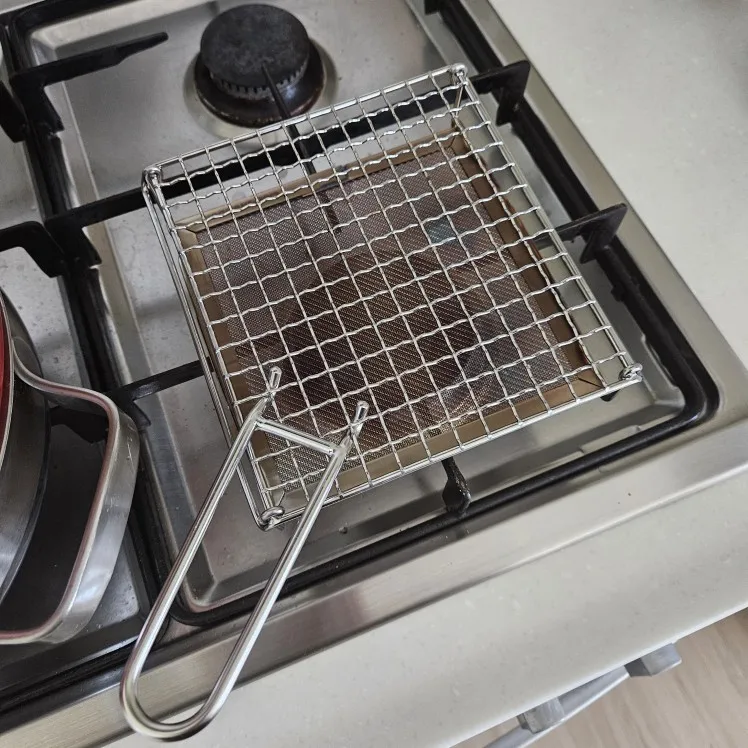 This CAMPINGMOON folding grill net lets you transform your camping stove into a grill, making it easy to toast bread, grill small foods, or evenly heat meals.