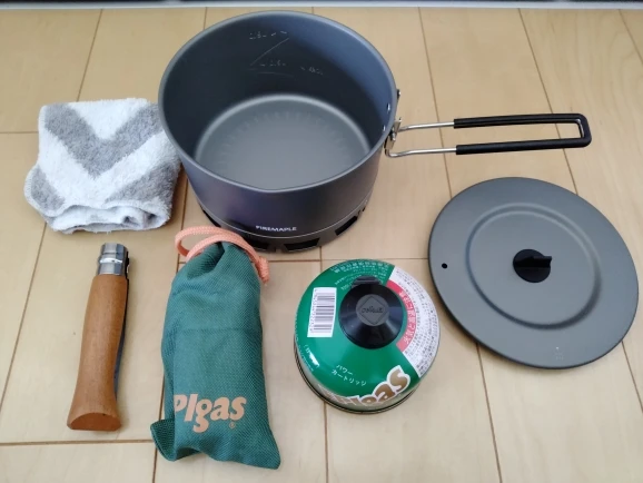 Originally, I used Snow Peak’s Titanium Trek 900ml, but its narrow bottom and tall shape made it unstable even when placed on a tripod. Therefore, G2 and G3 pots are excluded considering the number of features that can be carried.