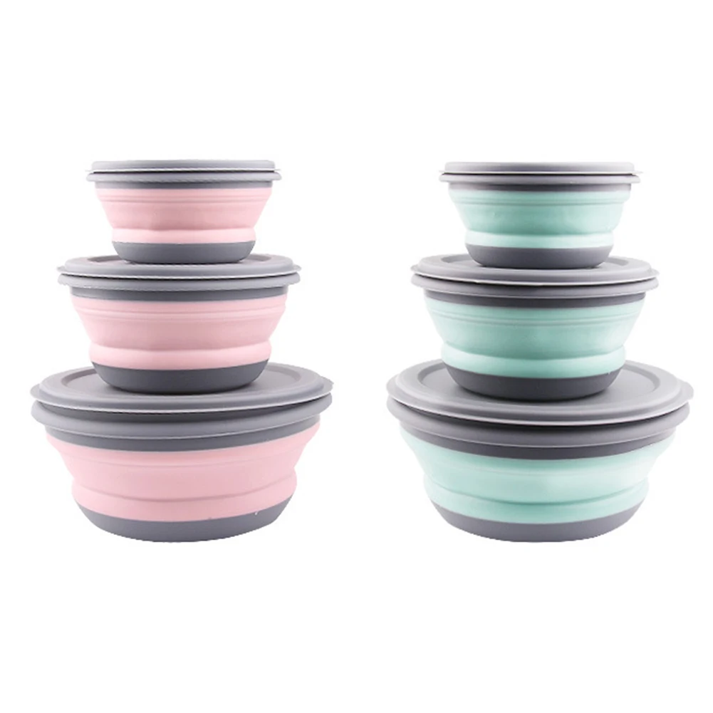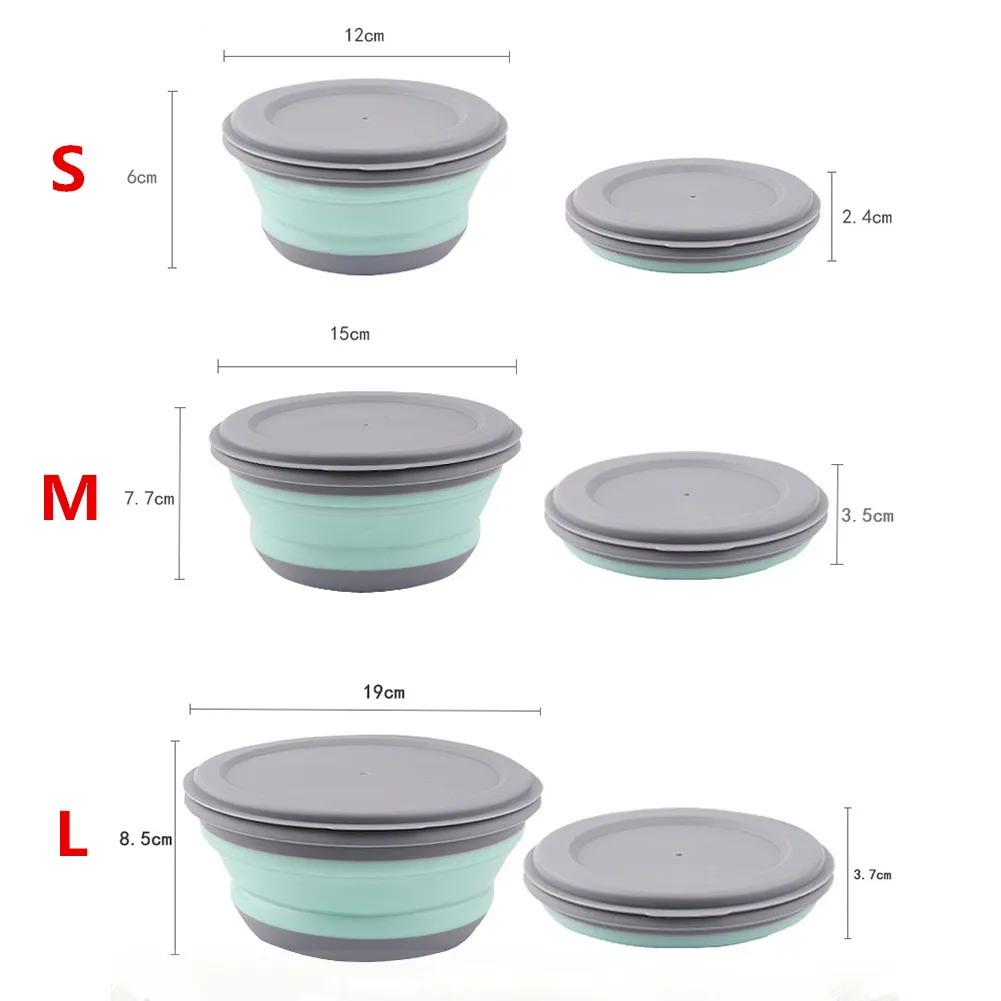 Each bowl comes with a secure lid to keep food fresh and prevent spills, while the durable silicone construction ensures they are easy to clean and resistant to cracking or breaking. Ideal for salads, snacks, or hot meals, this set combines convenience, portability, and versatility—making it a must-have for campers, travelers, and outdoor enthusiasts who want a practical and eco-friendly tableware solution.