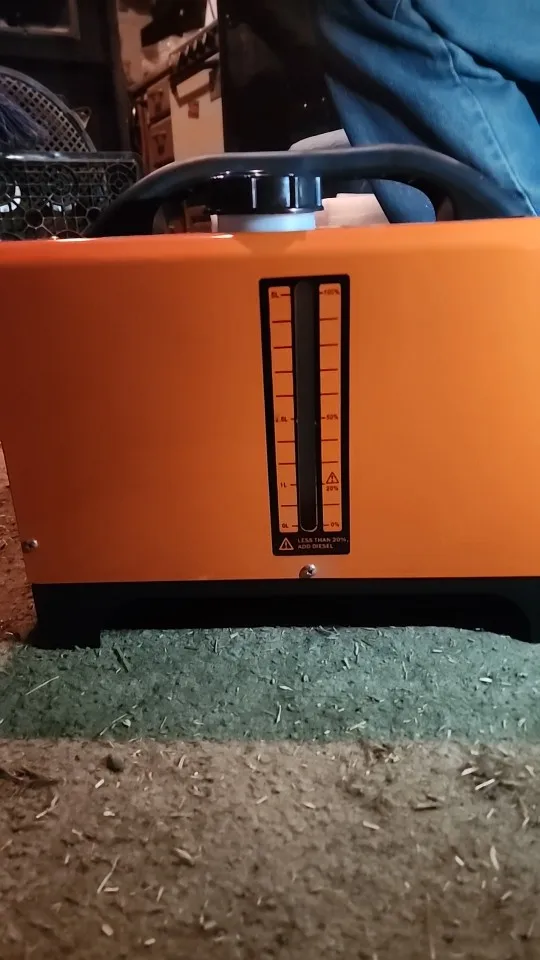 Amazing heater! 5min installation for quick testing. It heated my uninsulated garage (35 square meters) from 1.7 to 4.3 degrees celsius in 23 minutes! Humidity went from 92 to 86. Can’t wait to test it more (my battery died). It’s actually bigger than it looks in photos. Also it has app (not tested yet). One photo shows fuel consumption in 23 minutes.