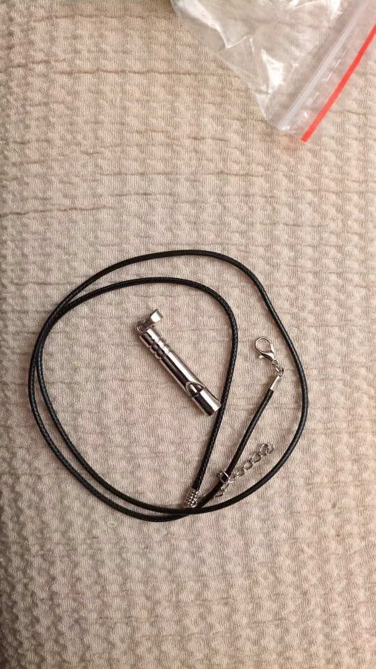 It is a small emergency whistle that comes with a pendant to wear around your neck or attach to a practical place, and it can help you.
