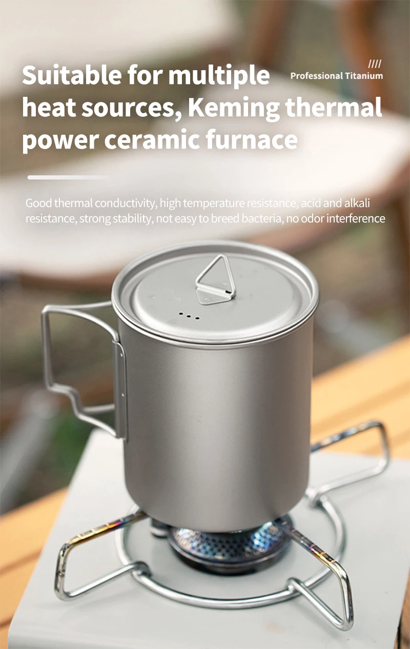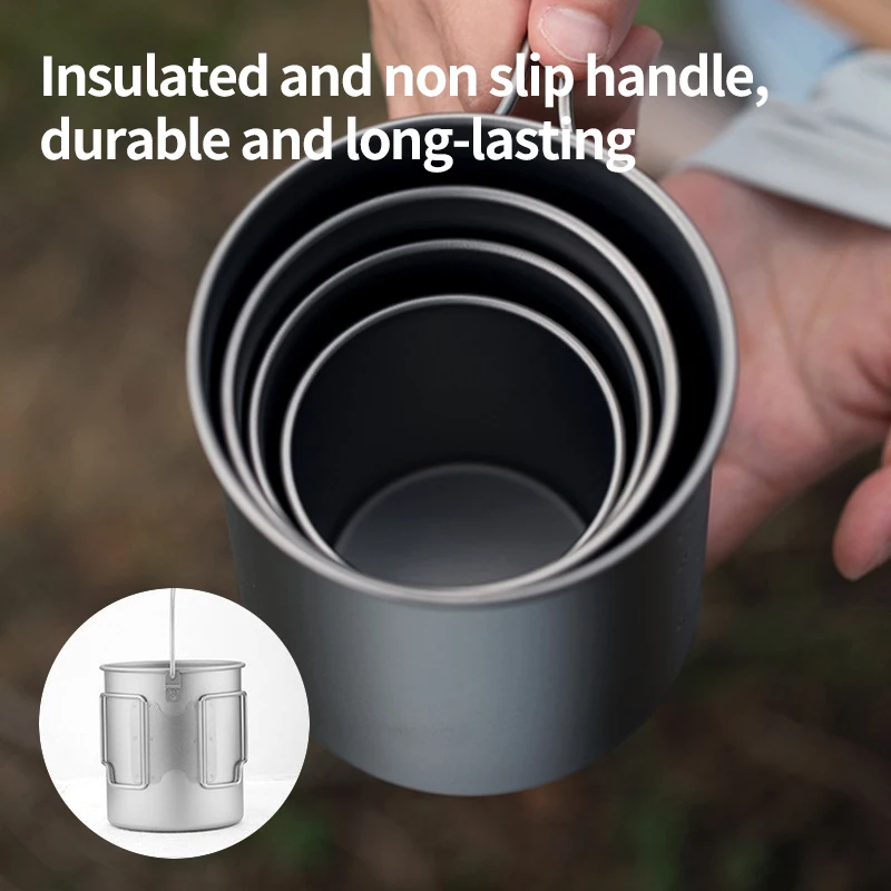 The foldable handle design allows the mug to pack down compactly inside your backpack or nesting cookware system. Titanium’s heat-resistant properties make it suitable for use directly over camping stoves (when applicable), making it more than just a cup — it’s part of your trail cooking system.